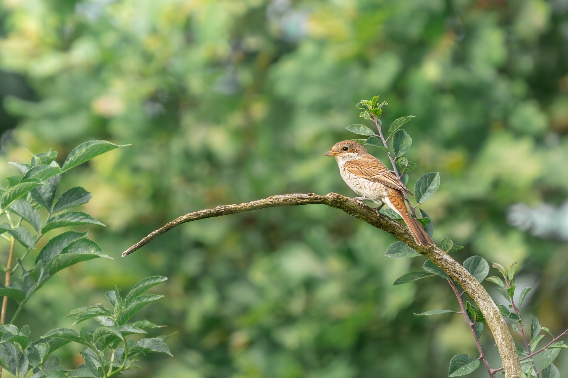 Ein Grund warum ich die Hobby-Ornithologie als so eine bereichernde Freizeitbeschäftigung empfinde, ist die Tatsache, dass jeder Spaziergang im Grünen, sei es nun im Stadtpark oder in der wilden Natur, immer etwas Freude bereithält. Denn egal wo man ist, man kann immer Vögel sehen, sie in ihrem Verhalten beobachten und sich daran erfreuen. Und so entzückend die Blaumeisen im Garten meiner Eltern oder die Dohlen auf dem Dach des Nachbarhauses sind, freut man sich doch immer besonders, wenn man wieder mal eine etwas scheuere und seltenere Art zu Gesicht bekommt. Während eines Kurzurlaubes mit ein paar Freunden Ende Juli inmitten der mecklenburgischen Natur war dies der Fall. Ich wachte in dem kleinen Wohnwagen, den wir für die Nacht gemietet hatten, auf und schaute aus dem Fenster: Die Sonne war schon aufgegangen und da ich als erster wach war, schnappte ich mir kurzerhand meine Kamera und machte mich auf in die umliegende Feldlandschaft. In sanften Hügeln erstreckten sich Felder, Brachlandschaften und Baumgruppen um mich herum. Rauchschwalben flitzten wie gewohnt über die Felder um nach Insekten zu jagen. Ich lief einen alten Feldweg entlang und gelangte immer weiter in verwilderteres Gebiet. Ich machte kurz Rast um mich auf meinem Handy zu orientieren, als ich vor mir auf einem Wegweiser eine neugieriges Neuntöter-Männchen entdeckte. Was für eine Überraschung! Im Münsterland ist der Neuntöter doch recht selten, so dass es mein erstes Mal war, dass ich diese Art aus so naher Distanz beobachten konnte.
